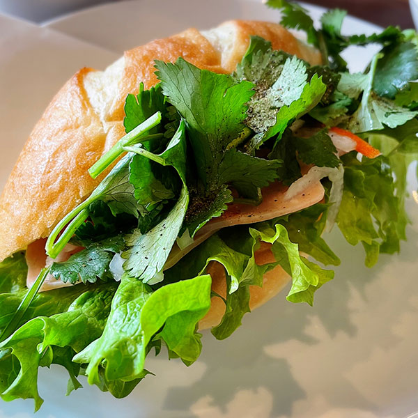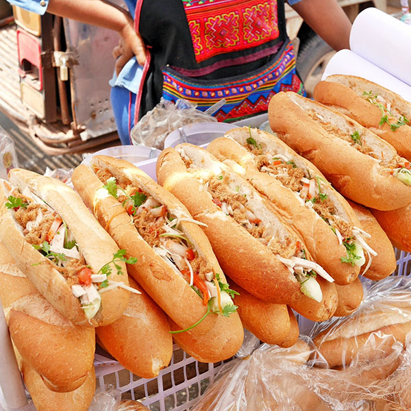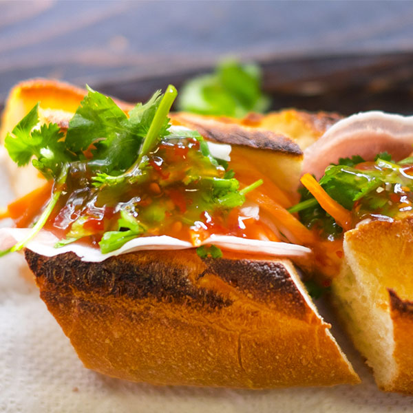 バインミーとは、ベトナムで広く親しまれているサンドイッチの一種で、フランス植民地時代に伝わったフランスパン(バゲット)を使用した料理です。パンには、パテやハム、豚肉などの肉類が挟まれ、たっぷりの野菜(キュウリ、ニンジン、大根のピクルス)とパクチーが一緒に入ります。独特の甘辛い味付けがされているのが特徴で、シャキシャキとした野菜の食感とパンの香ばしさが絶妙に組み合わさり、ベトナムのストリートフードとしても人気があります。
